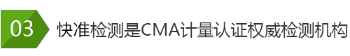 中國計量認證簡稱“CMA”,只有取得CMA認證證書的檢測機構,才能夠 從事檢測檢驗工作,對外出具檢測報告,并允許其在檢驗報告上使用CMA 標記。有CMA標記的檢驗報告可用于環(huán)境及產品的質量評價、成果及司法 鑒定